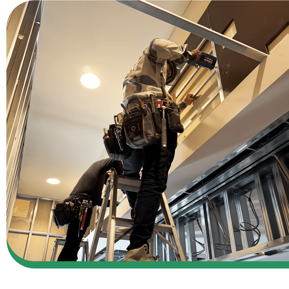 1級建築施工管理技士 や 1級内装仕上げ施工技能士 を保有し、経験豊富な職人が一つひとつの現場を丁寧に仕上げます。